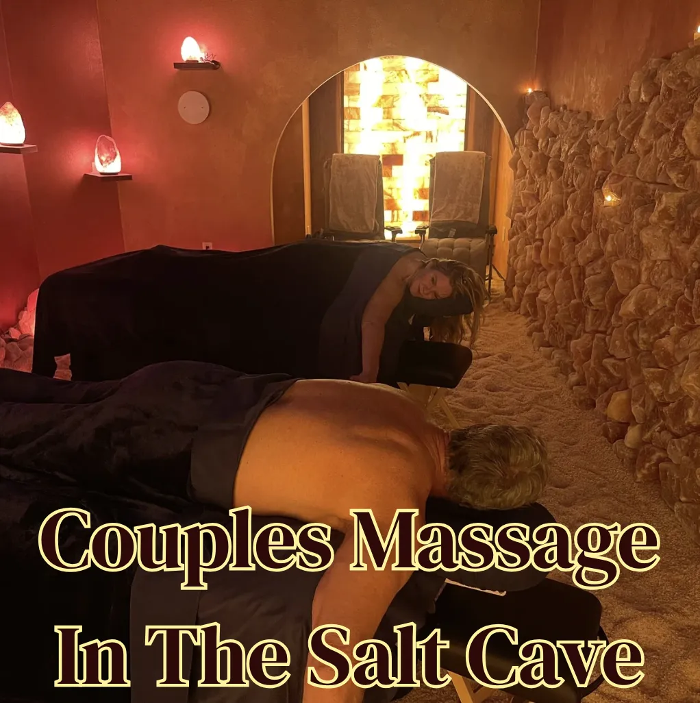 Experience a couples massage like no other! An elevated, luxury service for two, you both will receive expert massage therapy while also enjoying halotherapy in your own private salt cave den.